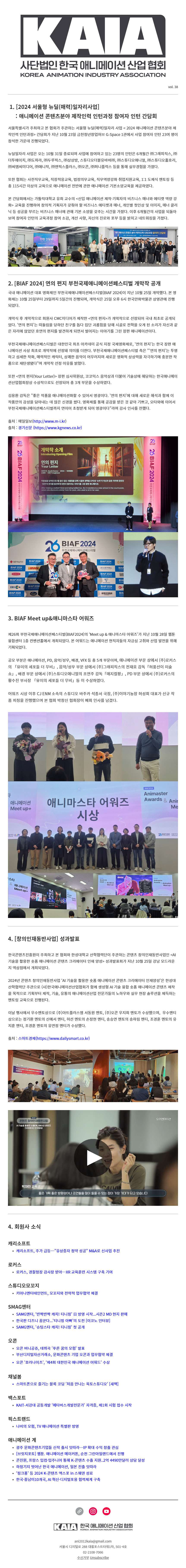 (사)한국애니메이션산업협회 뉴스레터 38호
