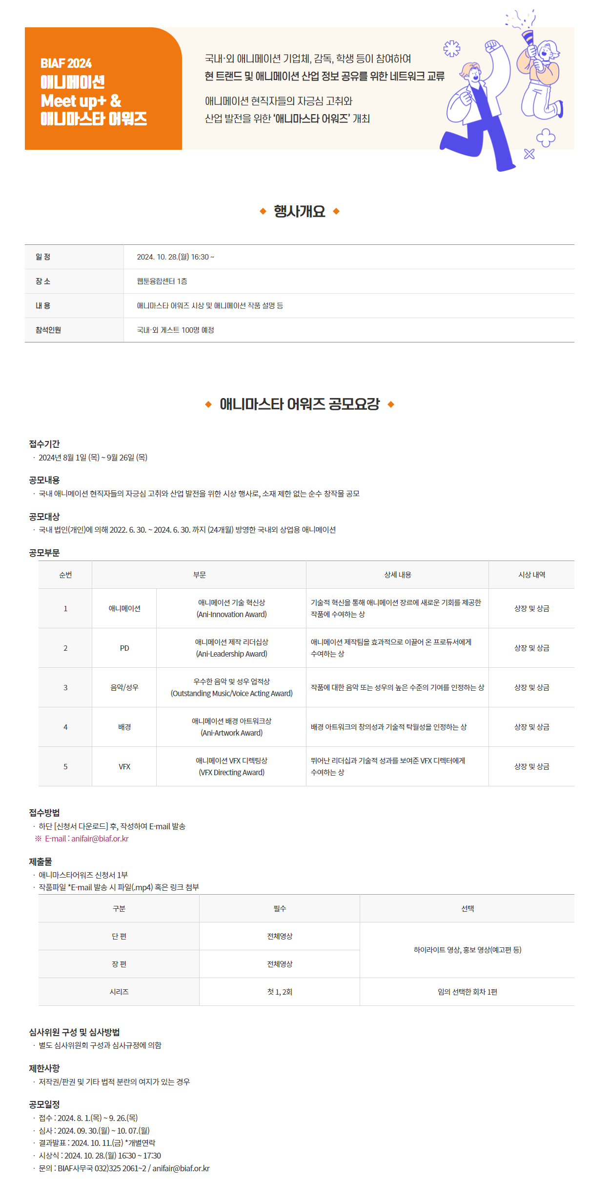 <BIAF 2024 애니메이션 Meet up+ & 애니마스타 어워즈>의 많은 참여와 관심 부탁드립니다.